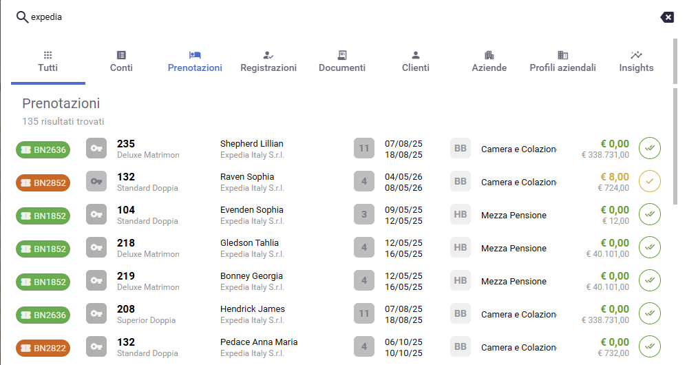 - Stato soggiorno (Attivo, Cancellato)