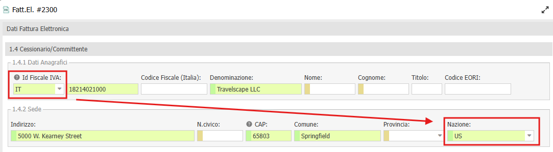 quando viene generata la Fattura elettronica, nella sezione 1.4 Cessionario/Committente, verranno riportati correttamente entrambe i valori