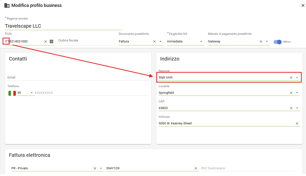 A partire da questa versione, se imposti il codice nazione nella partita IVA e questo è differente dalla nazione di "residenza"