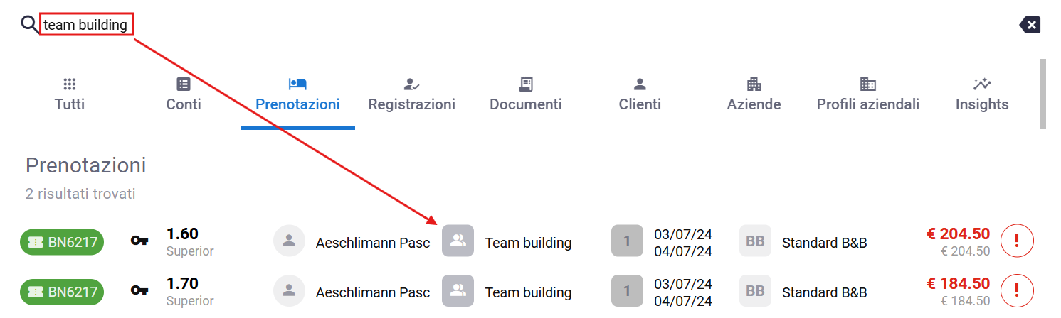 - la ricerca delle prenotazioni con il nome del gruppo