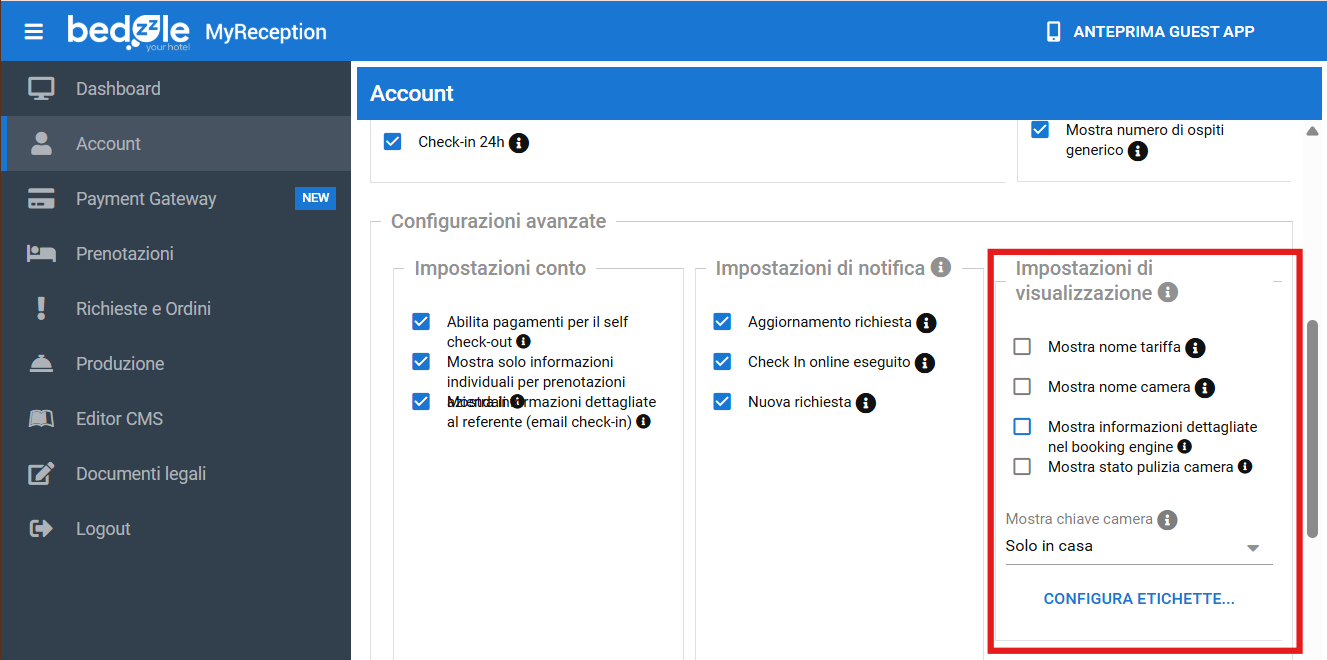 Ora è possibile personalizzare ulteriormente le informazioni da mostrare all'ospite