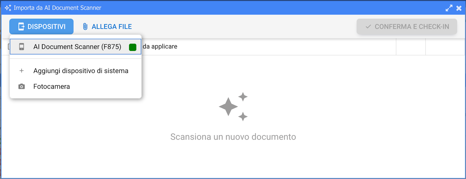 Nella maschera "Importa da AI Document Scanner":