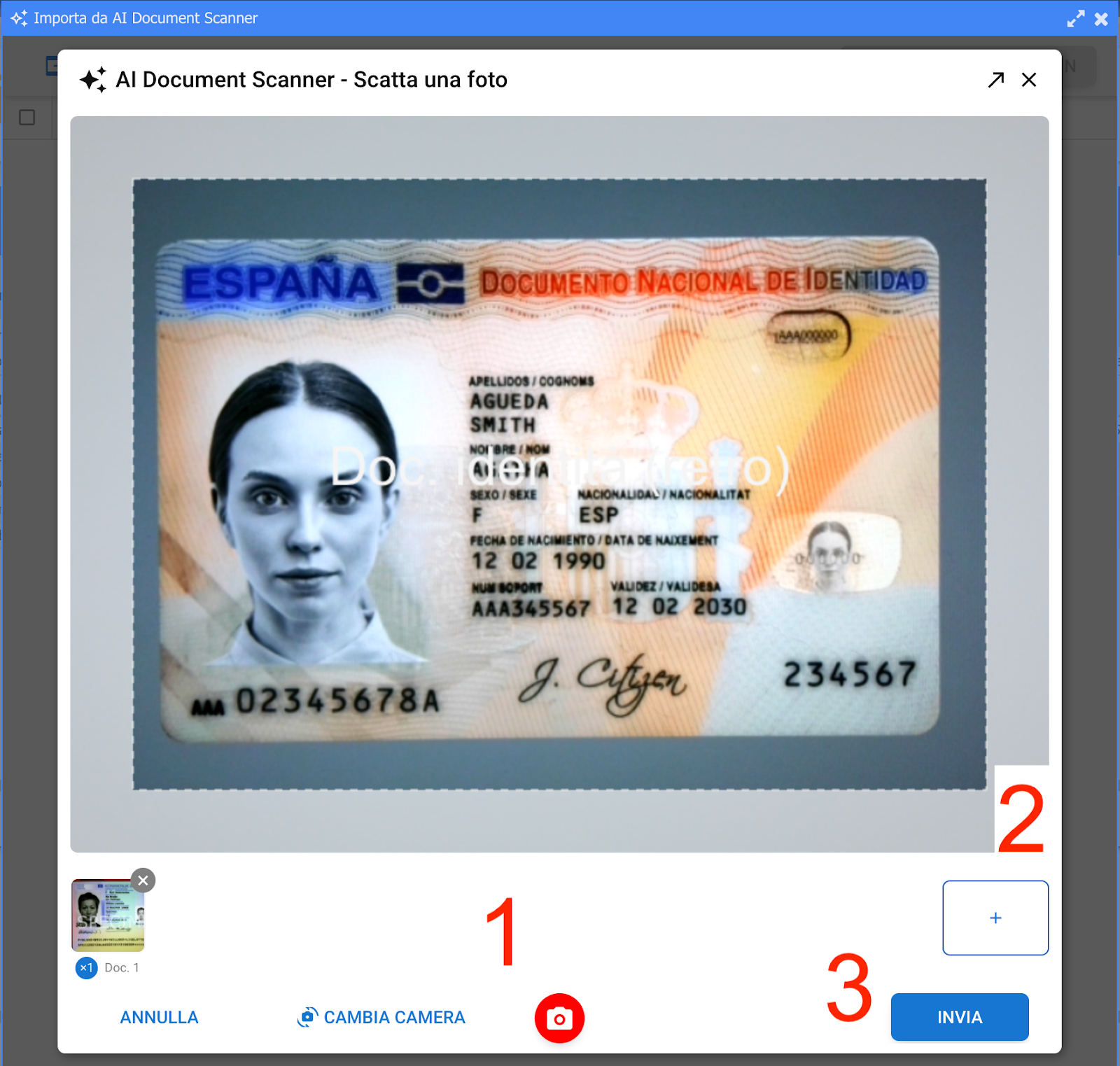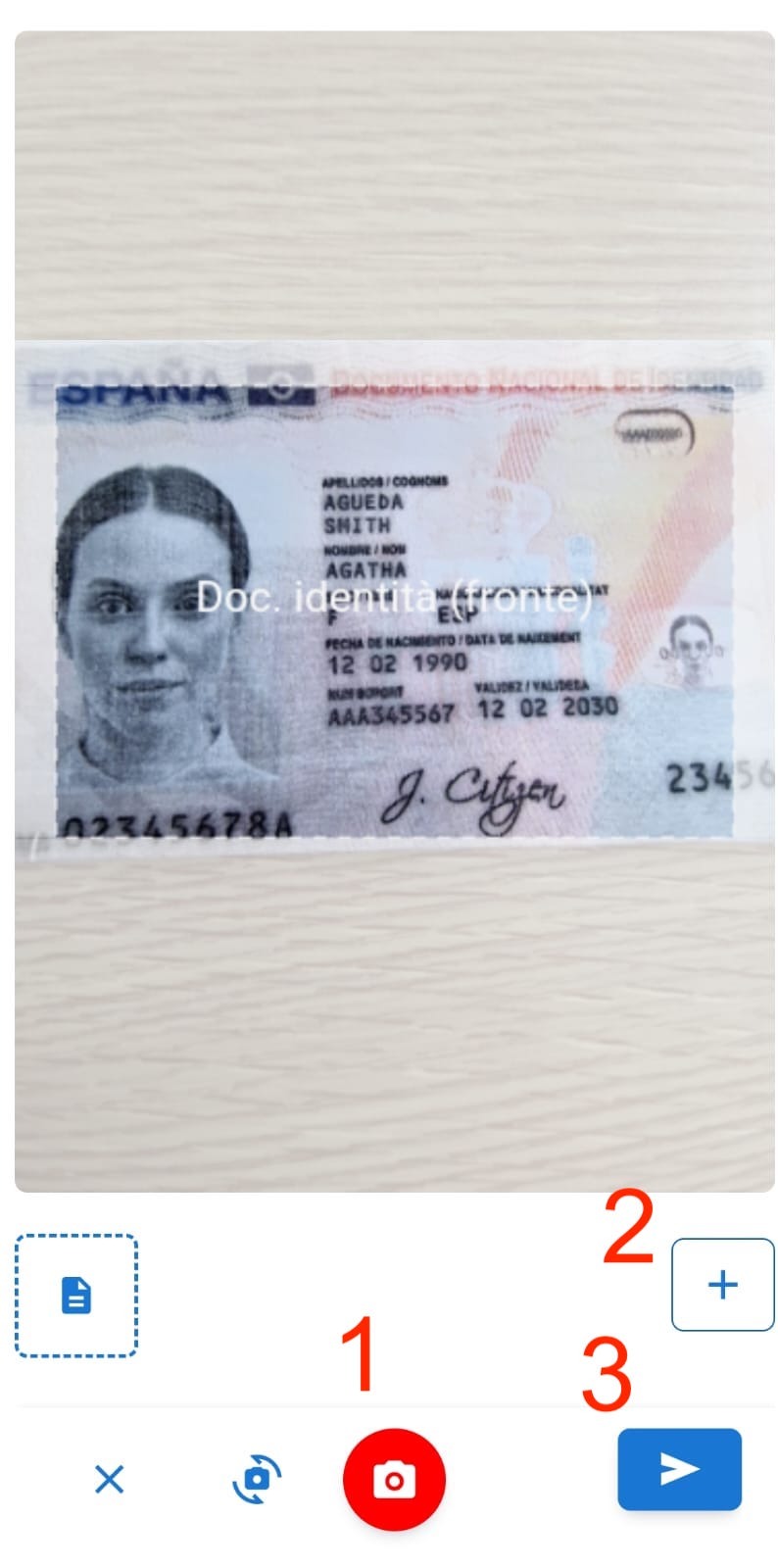 ● Per aggiungere un altro documento clicca sul tasto e scatta le foto dell'altro documento.