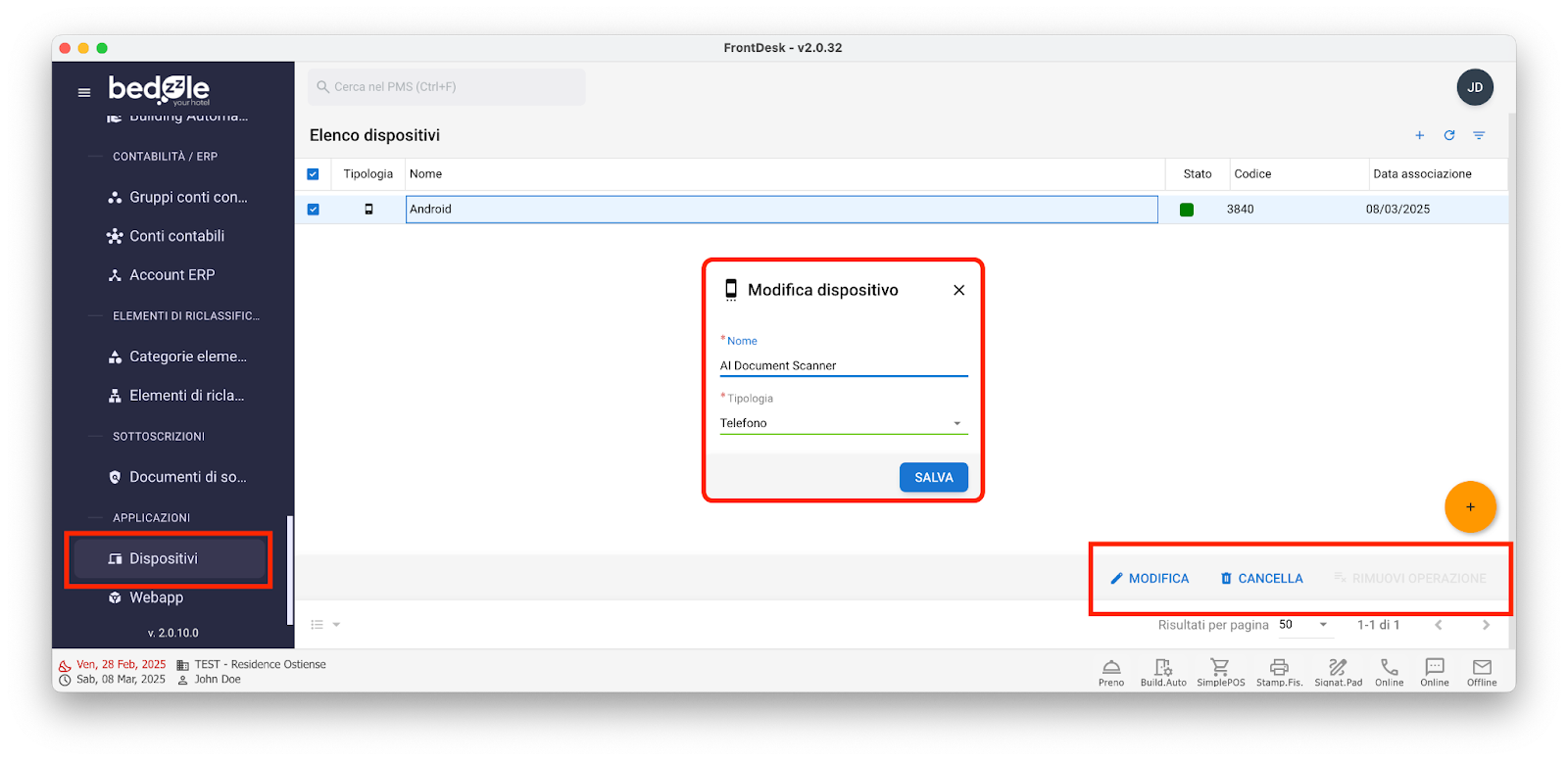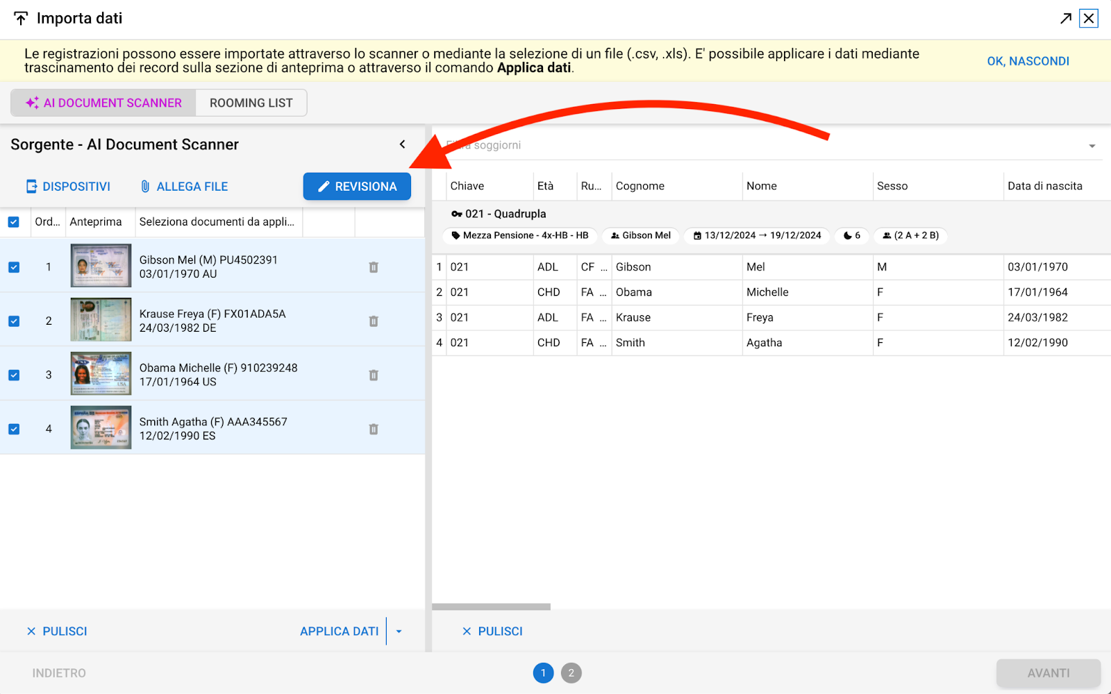 ● Clicca sul tasto "Invia" per inviare i dati al PMS nella maschera "AI Document Scanner"