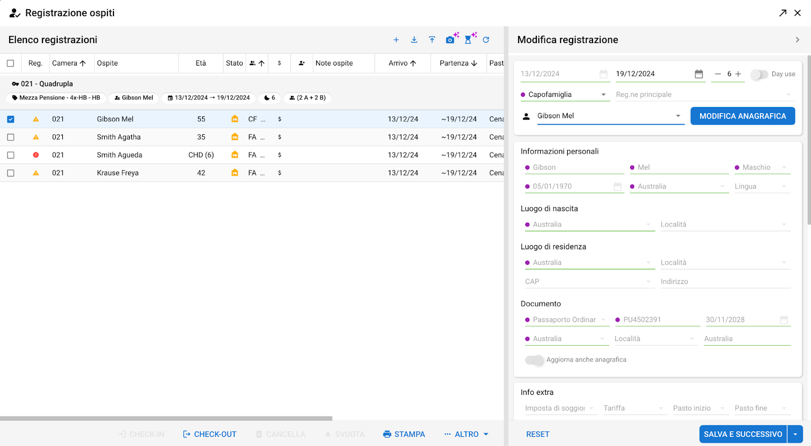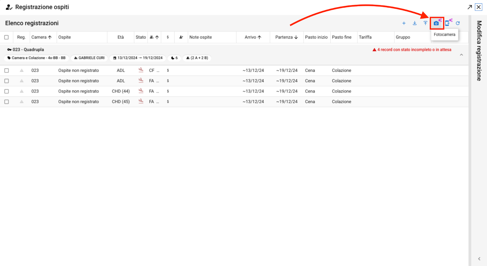 Verifica i dati inseriti nel modulo "Registrazione ospiti" e salva le modifiche.