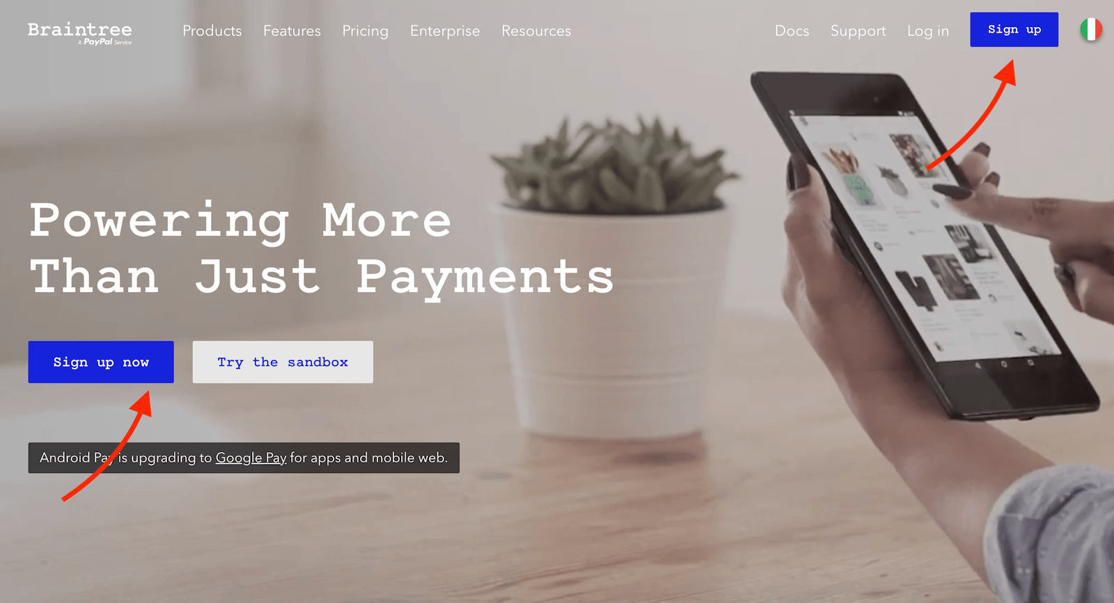 Clicca sul seguente link: https://www.braintreepayments.com/en-it