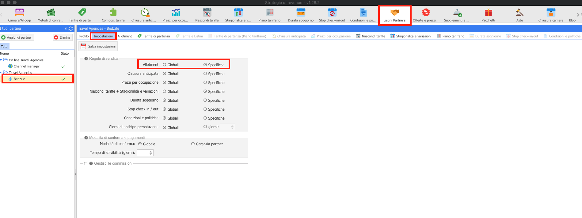 Allotment esclusivo: il sistema venderà le camere solo sul Booking Engine del partner che hai configurato, il booking engine della tua struttura sarà escluso