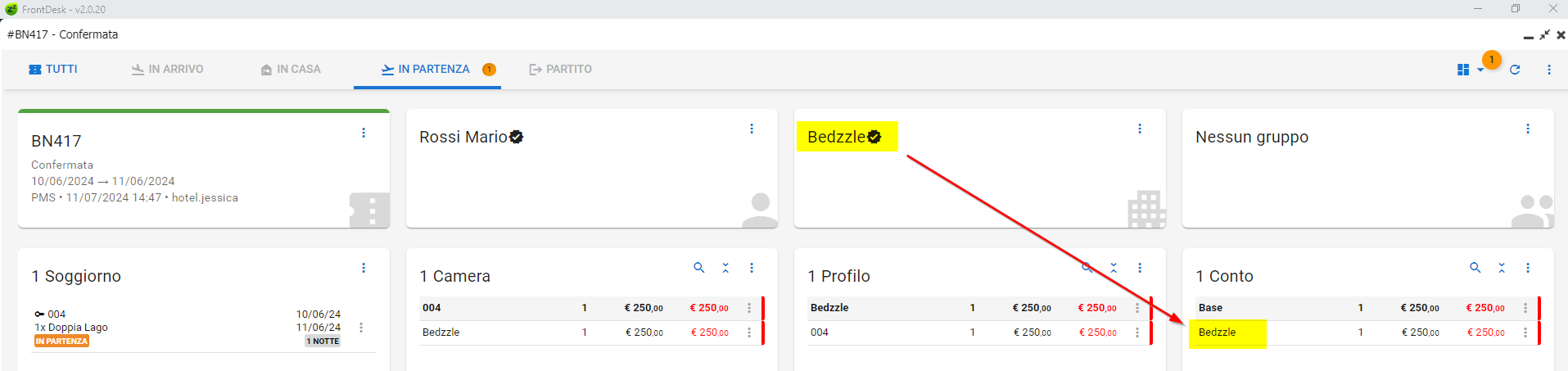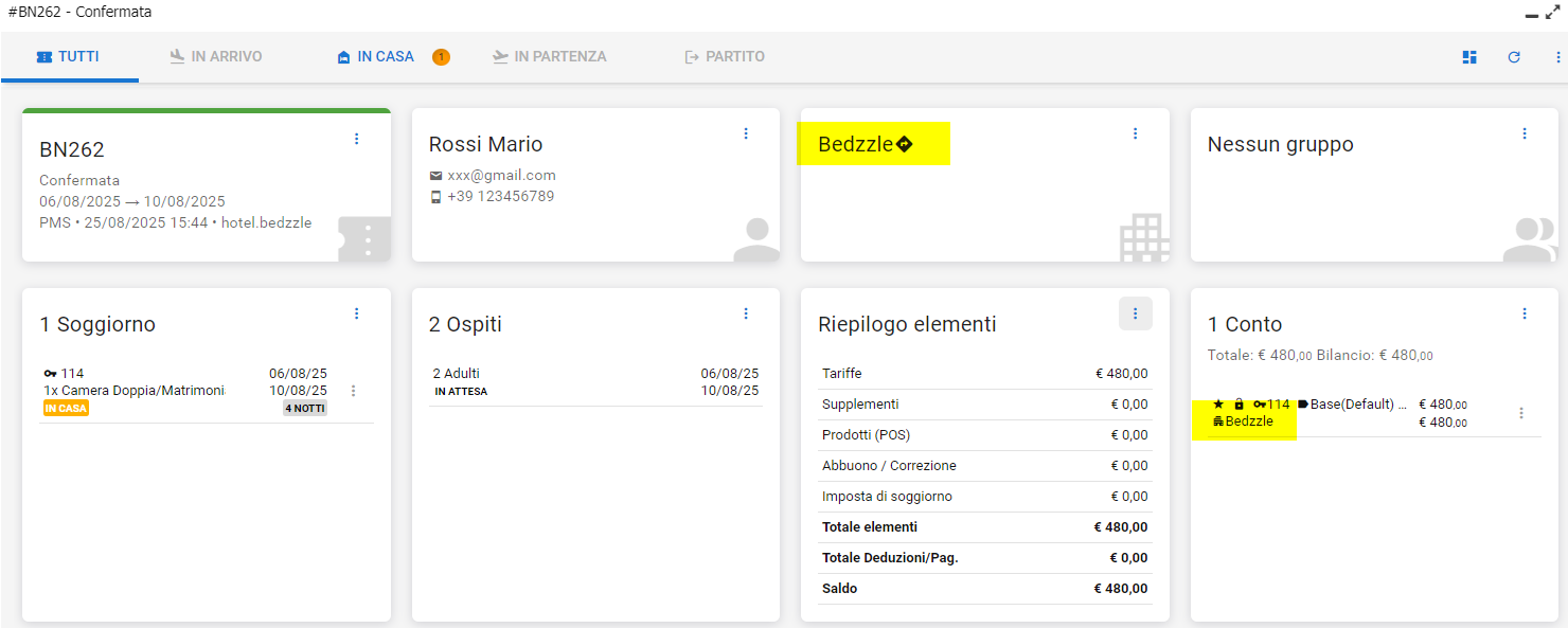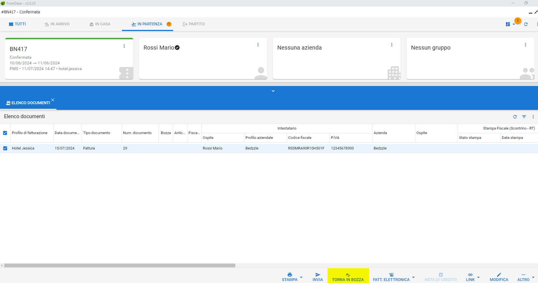Se l'Azienda è stata associata dalla relativa Card, il conto della prenotazione sarà automaticamente intestato all'Azienda stessa.