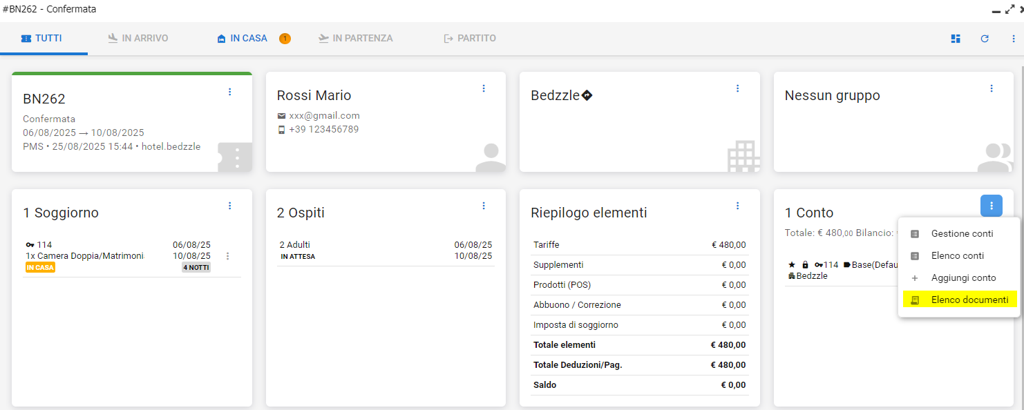 Il documento, insieme a tutti i documenti inerenti la prenotazione, è presente al menu