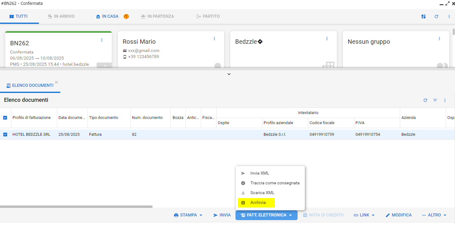 Se è stato commesso un errore, prima dell'invio della Fattura stesso, è possibile rettificare la Fattura cliccando su Archivia: