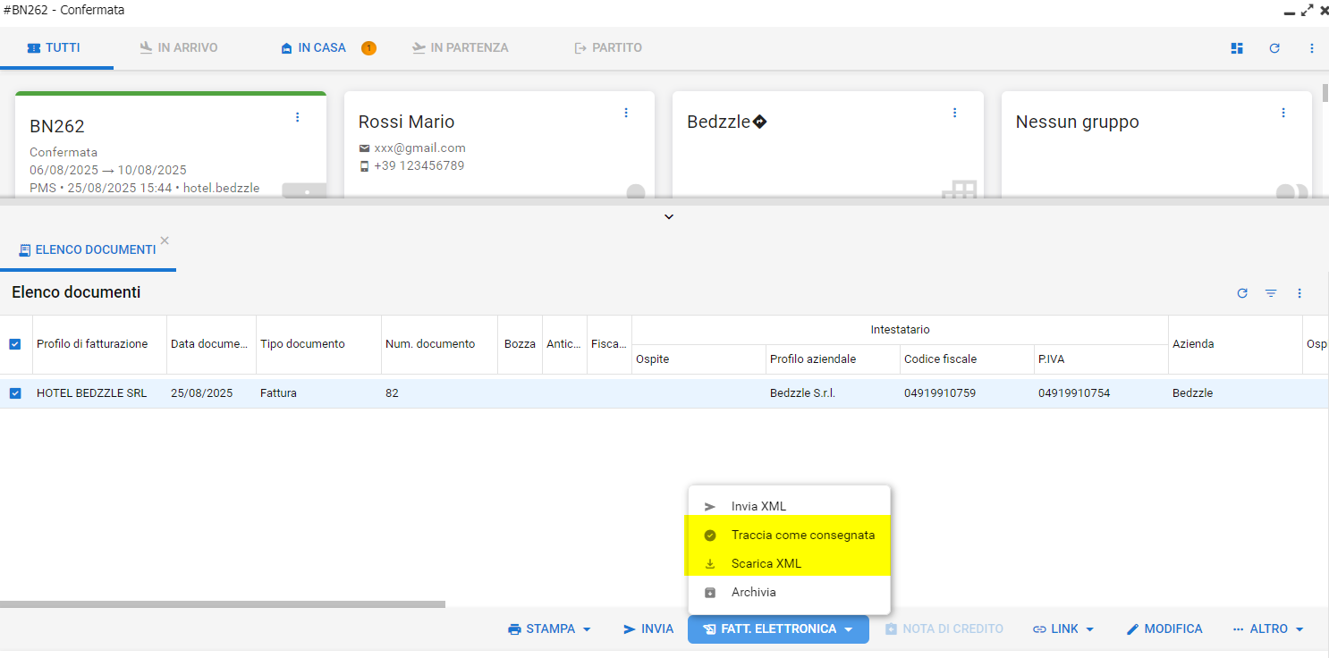 Una volta selezionato, sarà possibile procedere con il download o l'invio diretto dell'XML.