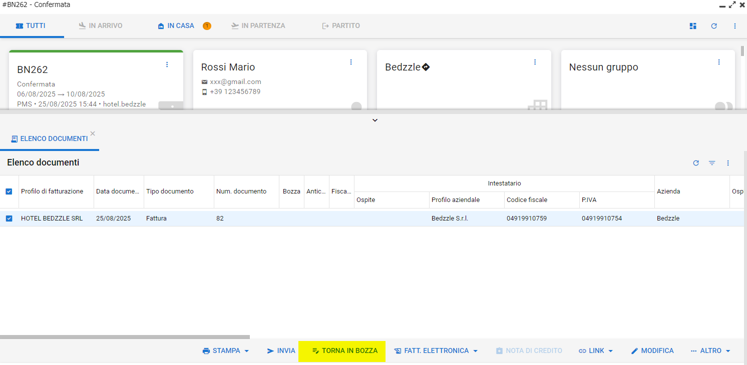 Riportando la Fattura in Bozza potremo procedere con la modifica dei dati e la generazione del nuovo XML: