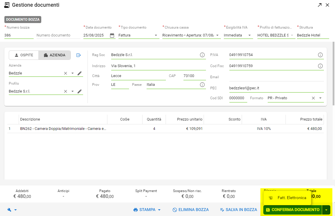 Di seguito troverete gli step da seguire per generare un documento di tipo Fattura in Bedzzle.