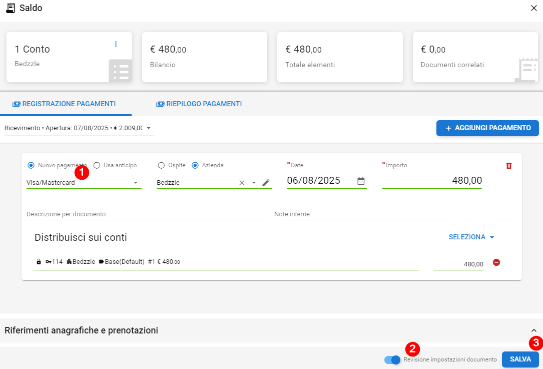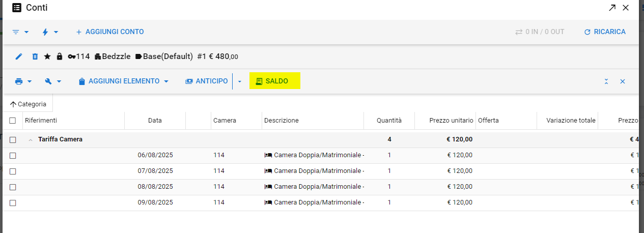 Una volta aperto il conto da gestire, cliccare su Saldo per avviare la procedura del pagamento: