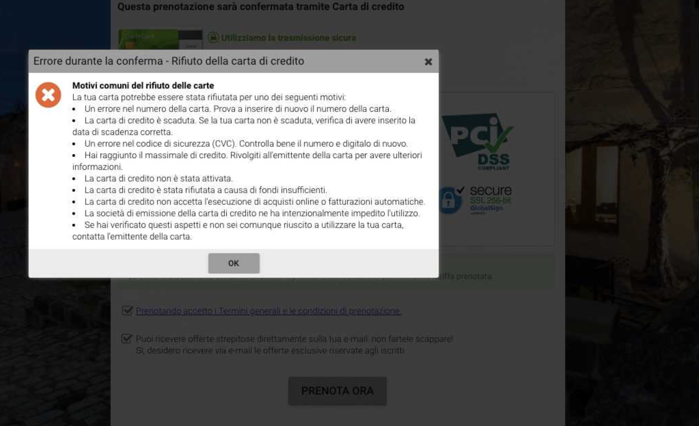 Se visualizzi il seguente errore e stai utilizzando il servizio di tokenizzazione "hosted"