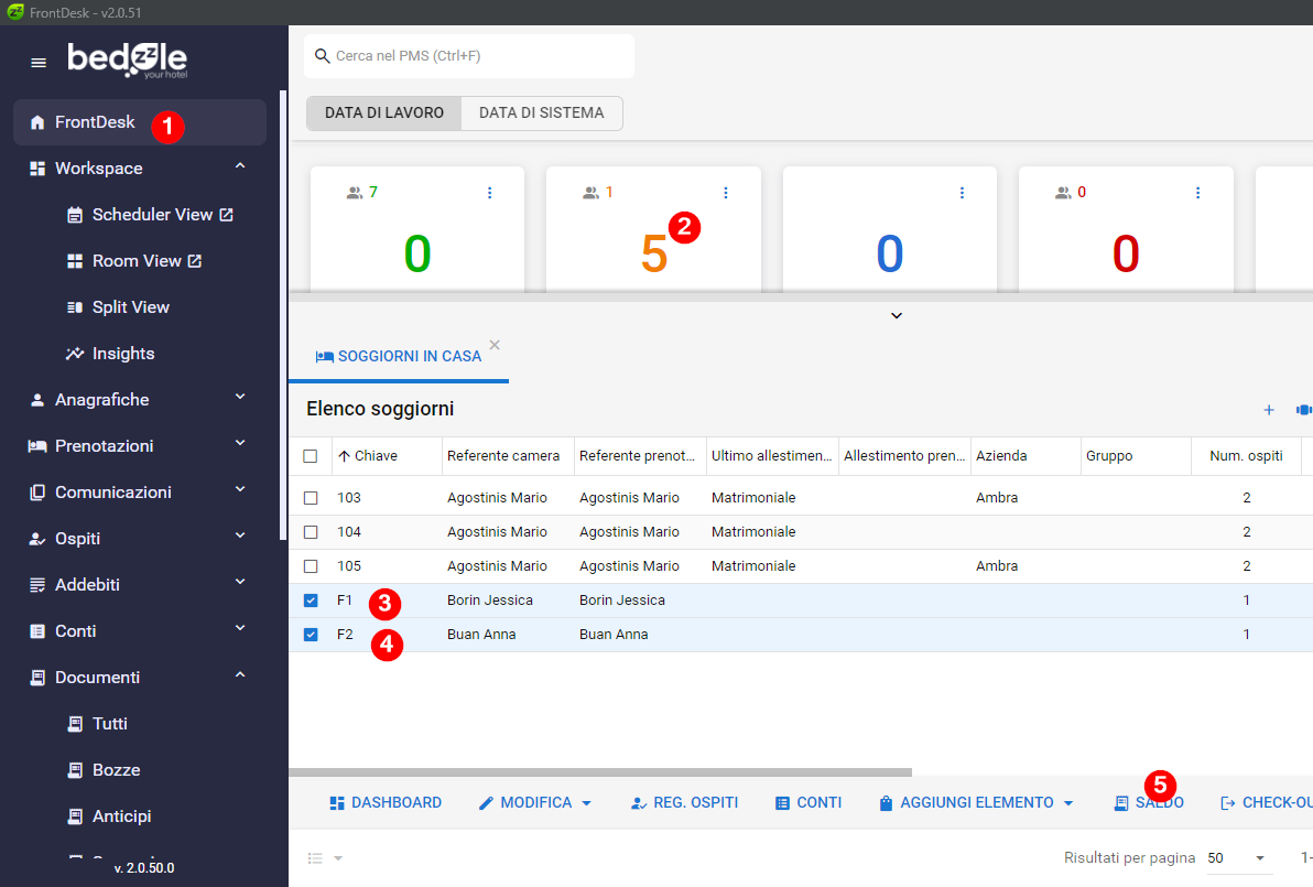 In Bedzzle è possibile effettuare un unica procedura di Saldo che chiuda i conti di più soggiorni diversi con un unico pagamento e documento fiscale.