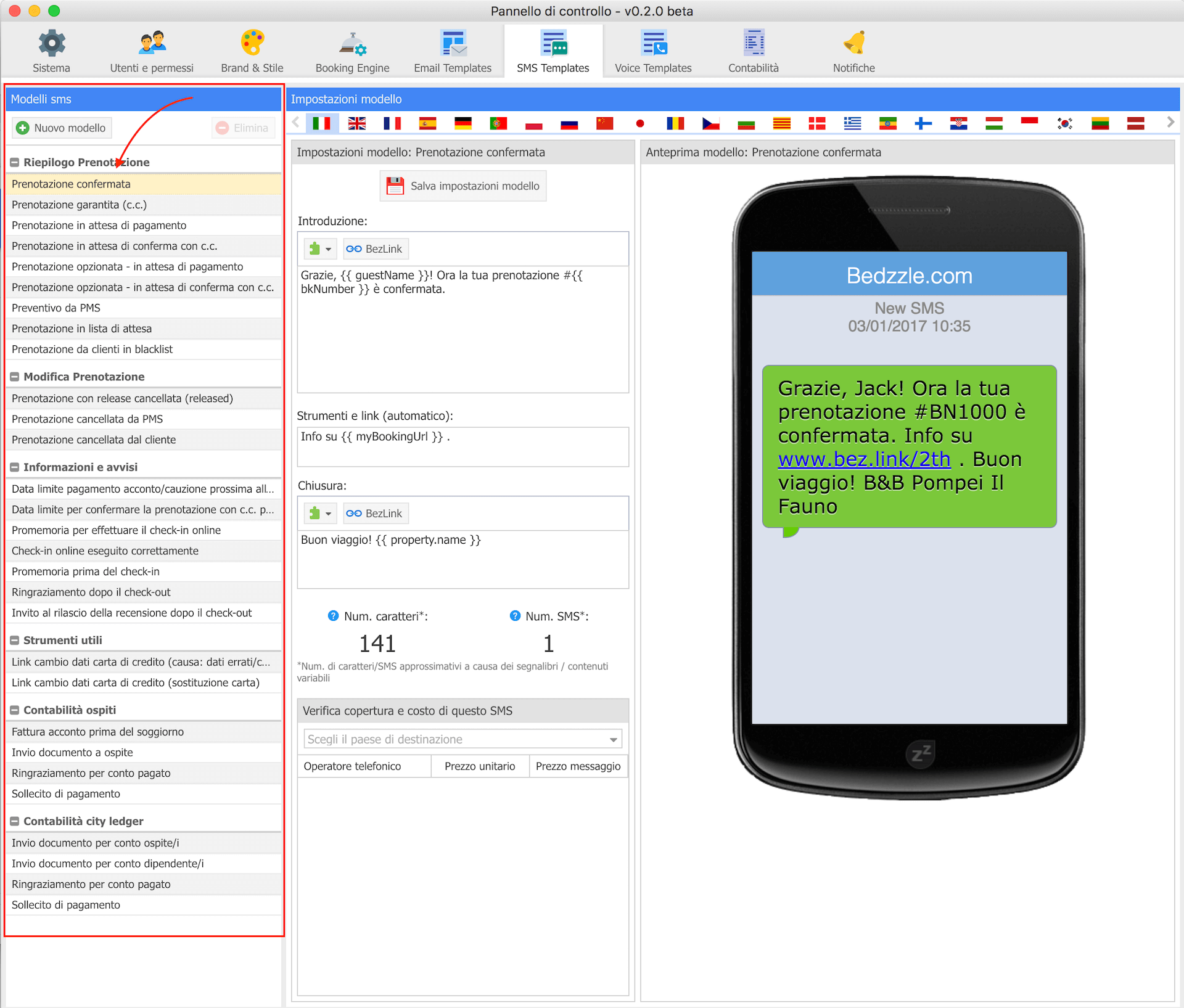 1. Apri l’applicazione Pannello di controllo e nella scheda SMS Templates seleziona il modello da modificare