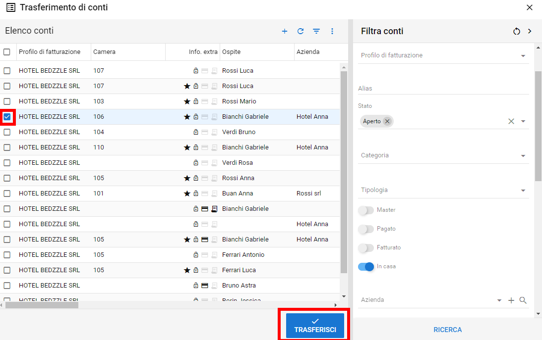 In Bedzzle è possibile spostare un qualsiasi elemento da un conto ad un altro della stessa prenotazione, utilizzando il trascinamento. Per effettuarlo, è necessario per prima cosa creare i conti necessari come riportato nella Guida Una volta aperta ...